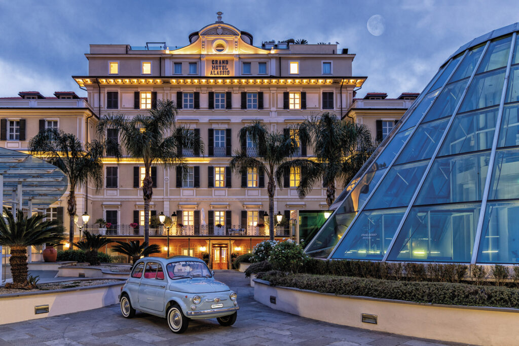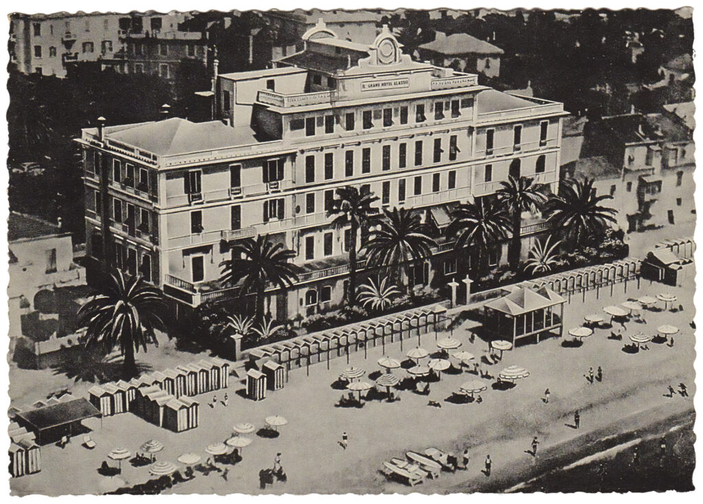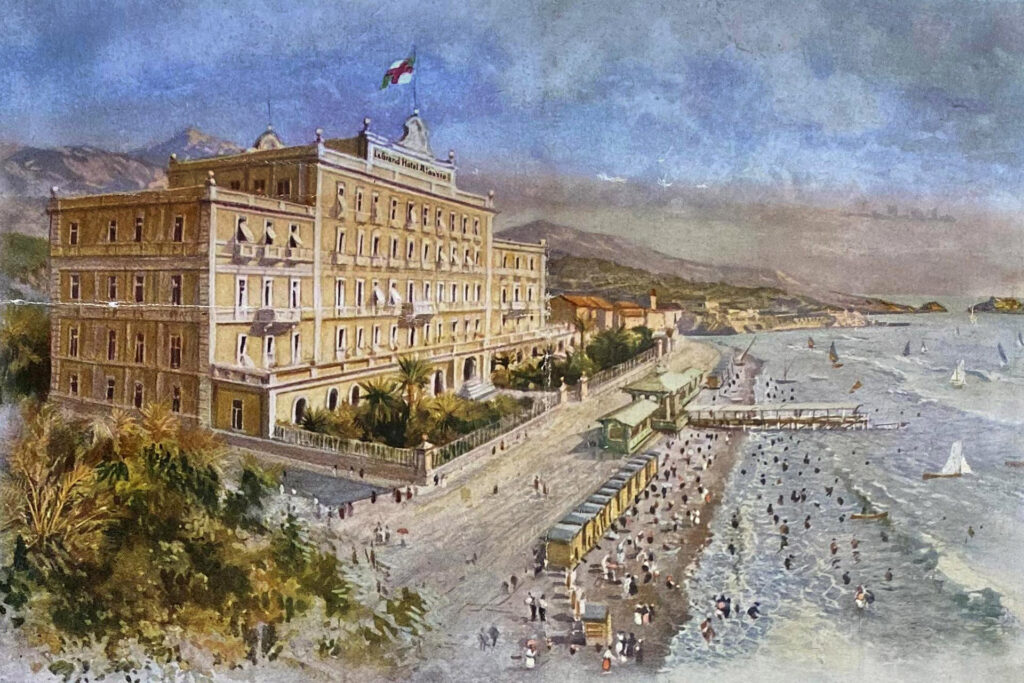 It was built in the 19th century, when the town became a favourite destination for English tourists, attracted by the Mediterranean climate, the abundance of greenery, the beautiful beaches and the picturesque views. The hotel was one of the most prestigious of its time: following the example of the palaces on the Côte d’Azur, it was built facing the beach in a dazzling neoclassical style. It immediately became the favourite residence of the wealthiest and most refined tourists holidaying on the Riviera di Ponente.